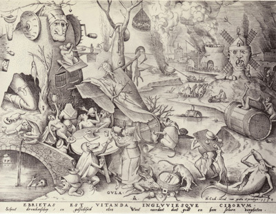 ピーテル・ブリューゲル 大食(七つの罪源シリーズ) 1558年 エングレーヴィング ベルギー王立図書館所蔵 ©KBR