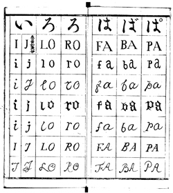 1814年に発刊された田宮仲宣編『和蘭文字早読伝授』。庶民向けにオランダ文字を紹介したもので、横文字を紹介する書となっている。