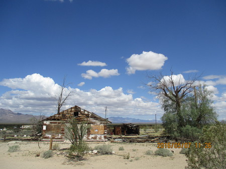 5月7日(土)。カリフォルニア州のアリゾナ州境の町Needlesからルート66旧道を西進。このあたりは年間降雨量が少なく灌木や多少の草地もあるが大半は土漠である。南部にはモハベ砂漠が広がっている。昼頃にEssexという地名の集落に差し掛かった。