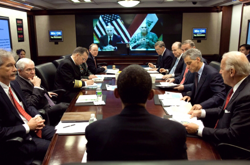 就任後、イラクの状況についての、就任後初のミーティング(09/1/21)。1年8ヶ月が経ち、ようやく撤退のめどがついたものの、長期的な課題は依然残る。