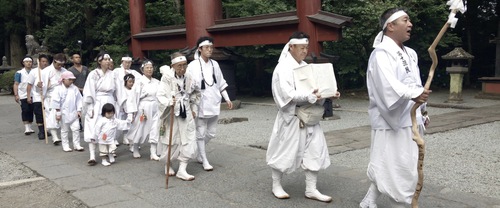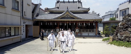 神道 扶桑教は、明治時代、全国に散らばっていた富士講を神道の1教派として統合した団体で、東京都世田谷区松原に本部がある。この世田谷区から富士山頂まで、2泊3日の行程を、今回同行させていただいた。