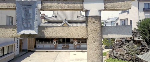 映像冒頭、住宅地の真ん中にひっそりと建つこの神社が、神道扶桑教本部(太祠)。「松原のお富士さん」と呼ばれている。石柱、鳥居の額、いたるところに「富士山」の文字が見られた。本堂の右横には信仰のよりどころのために石や土で富士山の形を模した富士塚がある。