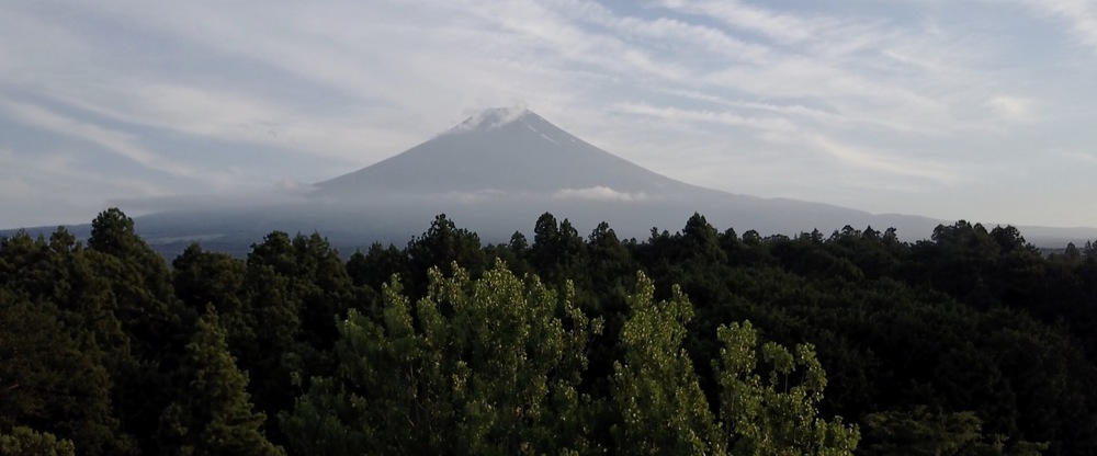 木々は高く生い茂り、富士山は見えないが、ドローンであればはっきりとこの地がなだらかに富士山につながっていることがわかる。