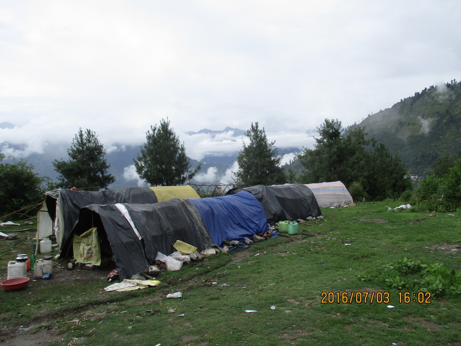 さらに山道を上がってゆくとカマを持った農作業に出かける地元のオバサンたちに出会った。テントの住人について尋ねると「ウッタル・プラデーシュ州から来た人たちで道路工事や農作業の手伝いをしている」とのこと。