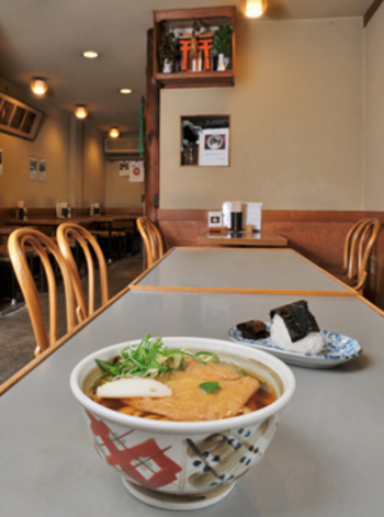 「ここから歩いて十分ちょっとのところに、『たこ竹』という鮨屋があります。お祖父さんはそこで働いておったそうです。昔は鮨だけでなく、うどん屋もやっていたいう話です。でも、うどんは廃業することにした。その機会にお祖父さんは独立して、うどん屋を始めることにしたんです。『たこ竹』のご主人には『新しいうどんを作ってみたらどうや』と言われて、稲荷寿司をヒントに作ったんやそうです。うどんにも、お揚げを使った料理があってもいいんやないか、と」