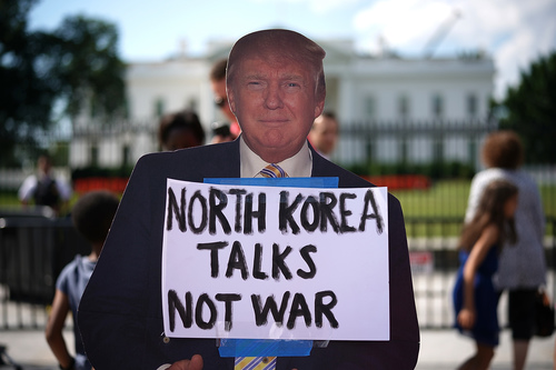 “ロケットマン”などと揶揄してきた相手にトランプ米大統領が真剣に対話を呼びかけた。11月8日、韓国国会で行った演説で、金正恩・朝鮮労働党委員長に対し、「はるかによい未来への道を提示する」と述べ、核開発断念を強く求めた。武力行使の準備を整えていることも強調したが、当面、交渉による解決を目指すという大統領の方針が鮮明になった。これに金正恩がどう応えるか。呼びかけに応じて交渉のテーブルにつくのか。拒否して新たな挑発に出るのか。いくつかのシナリオが考えられる。