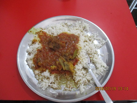 7月19日。夕刻、充実したローカル・フードを食べようとヴァシュシトの中心部にある地元で評判のインドレストランに入った。マトン・ターリを注文。隣のテーブルでブロンドのご婦人が一人で食事をしていることに気付いた。挨拶するとガリーナと名乗った。ロシアのロストフ出身で現在はモスクワ在住。失礼ながらお年を聞くと55歳で退職したばかりという。優雅な雰囲気のご婦人で40代にしか見えない。