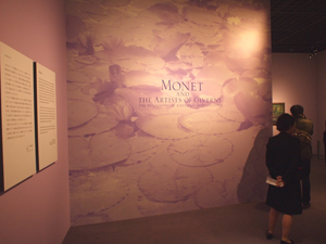 展覧会の入り口は、印象主義と関連の深い、薄紫色のきれいな壁に覆われている。
