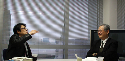亀山千広氏(左)「収益をあげれば、次の映画のボトムラインは当然高いところに設定される。前年を超えるのが当たり前、というのがビジネスの常でしょう?(笑)」。浜野保樹教授「大変だねえ(笑)」