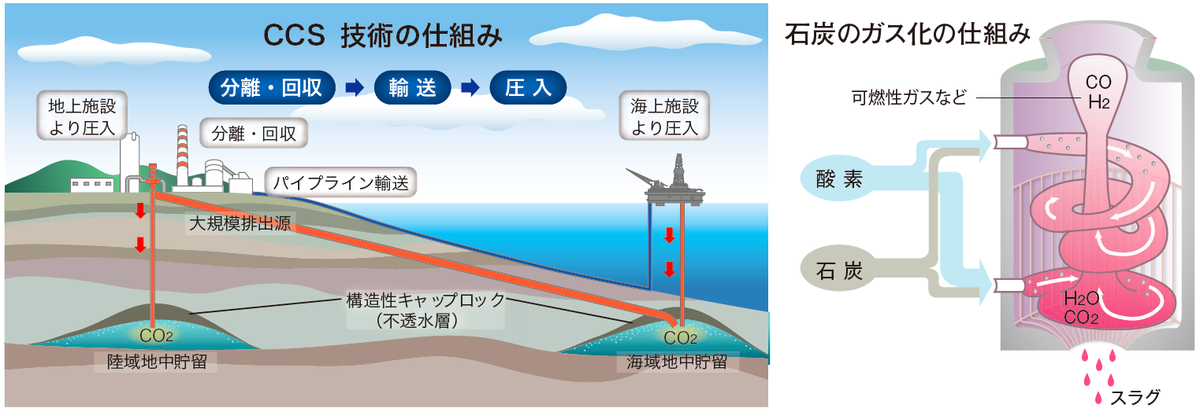 ただし、水素製造の過程で二酸化炭素も発生する。これにはCCS(二酸化炭素分離・回収)と呼ばれる技術を投入し、約98%の高純度でCO2だけを別により分け、そのままパイプラインで地下深くに送って封じ込めてしまう方法が併用される。