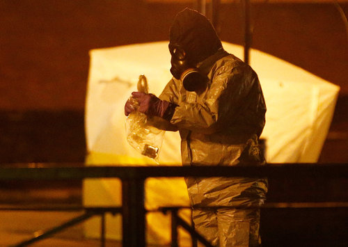 2人が公園でぐったりと倒れていたとき、目撃者は「白目をむき、口から泡をはいていた」と語った。英国政府は対テロ専門官を現場に派遣。事件に遭う直前、親子は自宅から車で市中心部に出向き、公園近くのレストランで食事をしていた。防護服を着た捜査員が現場から数々の証拠品を押収し、その後、生物化学兵器を研究するポートン・ダウン(英国の応用微生物研究所)による解析で、襲撃に用いられたのは、ソ連軍が軍事用に開発した猛毒の神経剤「ノビチョーク」であると断定した。