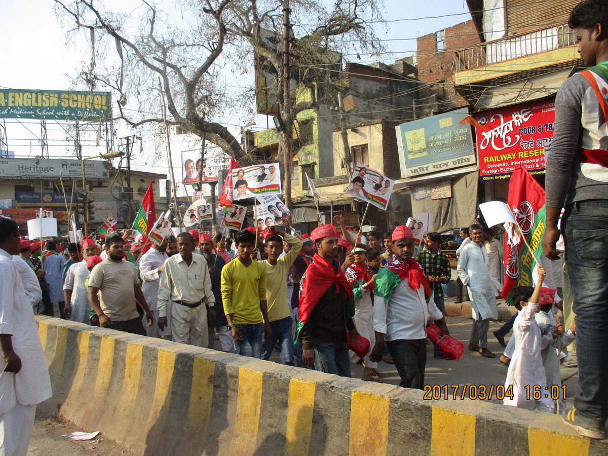 対立候補の選挙カーが交差点に入ってくると、選挙キャンペーンの興奮は沸点に達した。双方の支持者が大声で候補者の名前を連呼しながら巨大な押し競まんじゅう運動が展開された。しかし暴力的な衝突では決してない。あくまで平和的にかつエネルギッシュに二つの集団がぶつかり、そして離れていった。マハトマ・ガンジー以来の非暴力主義が根付いているのであろうか。