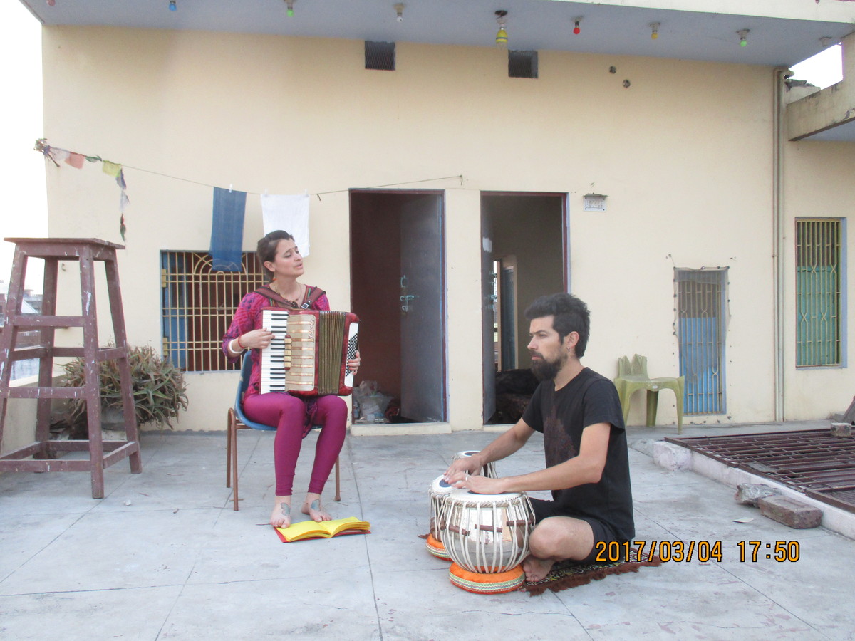 安宿もどこも満室であり軒並み断られたが、一時間近くロバと牛の糞尿とゴミが散乱する風通しの悪い狭い迷路のような路地歩き回った挙句に、ガンジス河を見下ろす高台の五階建ての安宿に辿り着いた。屋上のペントハウス(レンガ造りの小屋である)が眺めが良いので気に入った。オーナーの親爺と談判していたら一週間分前払いで一泊250ルピー(=450円)也となったので即決。