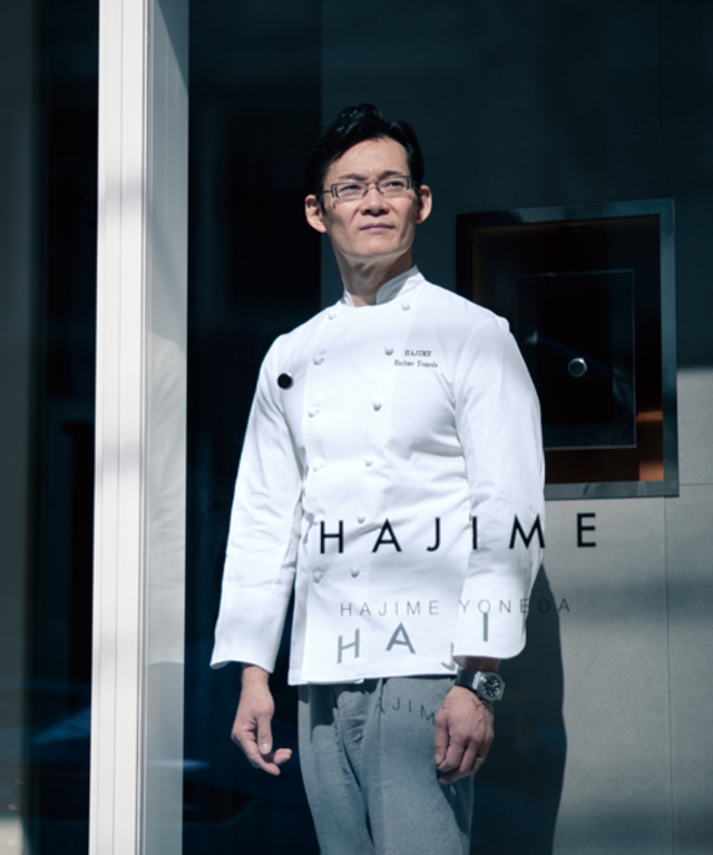 大阪のミナミとキタを結ぶ四ツ橋筋。繁華街の外側に続くオフィス街から住宅街に入る辺りに、開店から1年5カ月という速さで2009年にミシュラン三ツ星を獲得した米田肇のレストラン「HAJIME」はある。磨き上げられたガラスの扉に小さく「HAJ IME」の文字。二つ折りの上質な紙のメニューの表紙には、コンサートのパンフレットのように「地球との対話 2018」とのみ記され、開くと今日演奏される曲名のように、森、生命、川、海、破壊と同化、希望といった料理名が並んでいる。え? と舌より先に頭が動き始める。多くの場合、料理は「○○産の何とかのフリット」というような食材と料理法とで表されるので、ある程度は想像できる。が、このメニューからはどんな料理なのか見えない。とりあえず「地球」や「海」という言葉を頭で転がしながら、未知との遭遇の瞬間を待つことになる。