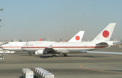 羽田空港に待機する政府専用機(1月28日撮影)