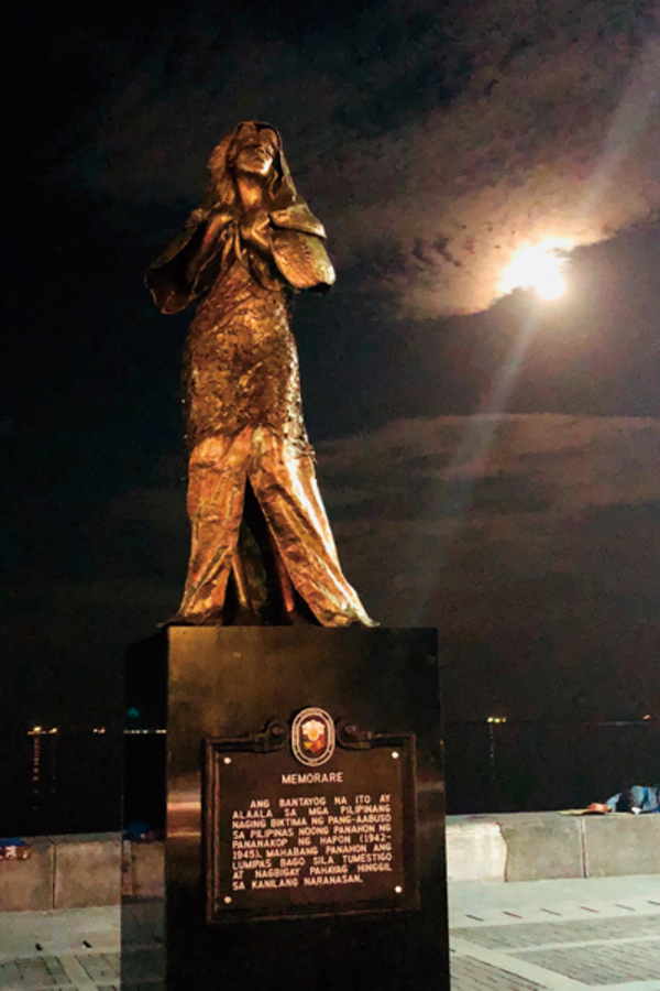 マニラ湾沿いの遊歩道に昨年12月上旬に設置されたフィリピン人慰安婦問題を象徴する女性像が、4月下旬に撤去された。1月に訪比した野田聖子総務相や在比日本大使館は遺憾の意を比政府側に伝えていたため、撤去は日本側に配慮した格好となったが、両国の元慰安婦支援団体などからは反発の声が相次ぐ。