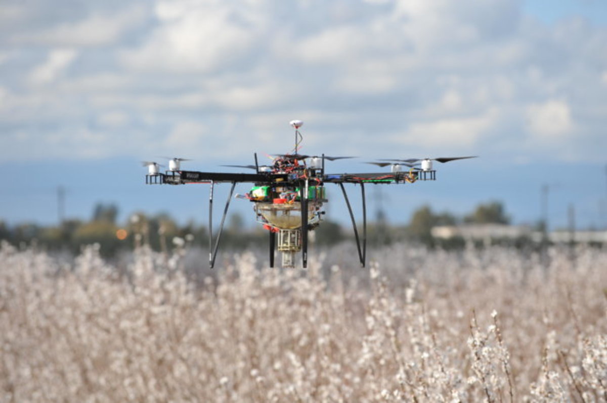 こうした事態に備えるため、現在米国で進められているのがヘリ型のドローンにより花粉を散布する、という方法だ。果実の受粉には人手を用いてひとつずつ行う、という方法もあるが非常に手間と時間がかかる。これをドローンにより一気に解決させよう、という方法だ。