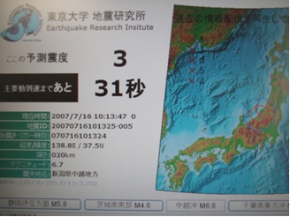 まず、一般的な学校の避難訓練との違いは、「緊急地震速報」を利用するという点だ。高島第一小学校には、文部科学省からの受託研究で東京大学地震研究所らが首都圏249ヵ所(2010年末時点)に設置した地震計の一つがある。この地震計を設置した学校には緊急地震速報も設置され、利用できるようになっているのだ。高島第一小学校の校長室と職員室のパソコンには、緊急地震速報の画面が常時映し出されており、速報が出されると、予測震度や地震発生までの時間、震央などが詳細に記される。これを利用して、避難訓練が行われるのである。