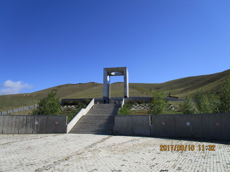 9月10日。ウランバートル郊外の日本人墓地跡の慰霊碑・記念堂を訪ねた。市内からローカルバスを乗り継いでバス停から徒歩20分ほどで高台の公園のように整備された施設に到着。慰霊碑や記念堂からはウランバートル市街が望見できる。