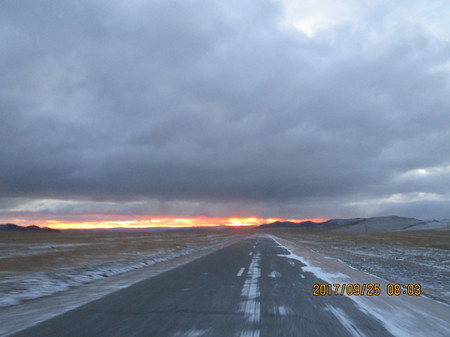 4月8日。国境のザミンウードを前日夕刻に出発した夜行列車はゴビ砂漠を越えて午前8時頃にウランバートル駅に到着。荷物を持って30分ほど歩くとウランバートルの目抜き通りであるエンフタイワン(平和)通りに到達。途中の交差点の道路案内に「ソウル通り」と書かれていた。