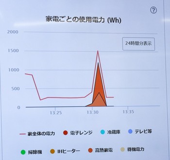 その中の目玉サービスが「うちワケ」。インフォメティスの機器分離技術を使った、スマホで家電の現時点の消費電力が分かるサービスです。しかし、このサービス、いろいろな方向性を暗示しているように思います。