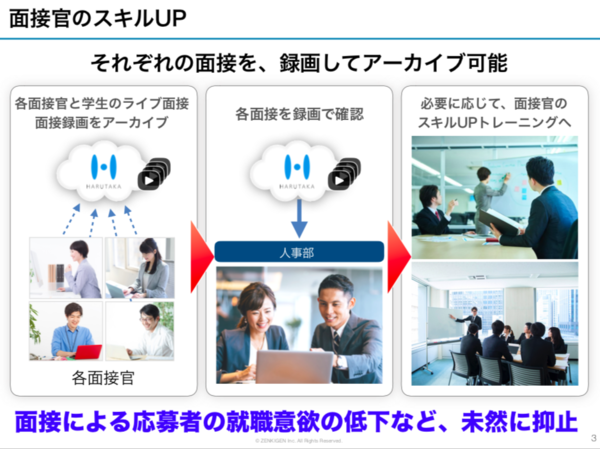 そこで、採用活動から人材育成までを一貫してサポートするサービスで社会に意味ある起業をと決意したそうです。 世の中の多くの企業でも、応募者が集まらない、エントリー書類の読み込み、地方での面接場所の設営、面接日程の調整、面接に応募者が参加しない、内定後の辞退、膨れあがる求人広告費と出張費、など、新卒採用だけでも多種多様な対策と準備が必要であり、運用の複雑化による人事部の疲弊感、そこにインターンへのアプローチ、中途採用と、人事部は採用ばかりに人出と手間を取られ、本来重要なはずの入社後の人材育成に手が回らず、将来嘱望された人材が離脱していくという現状があります。
