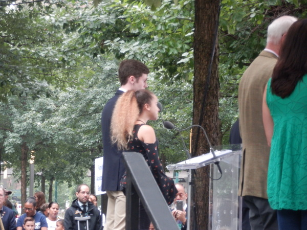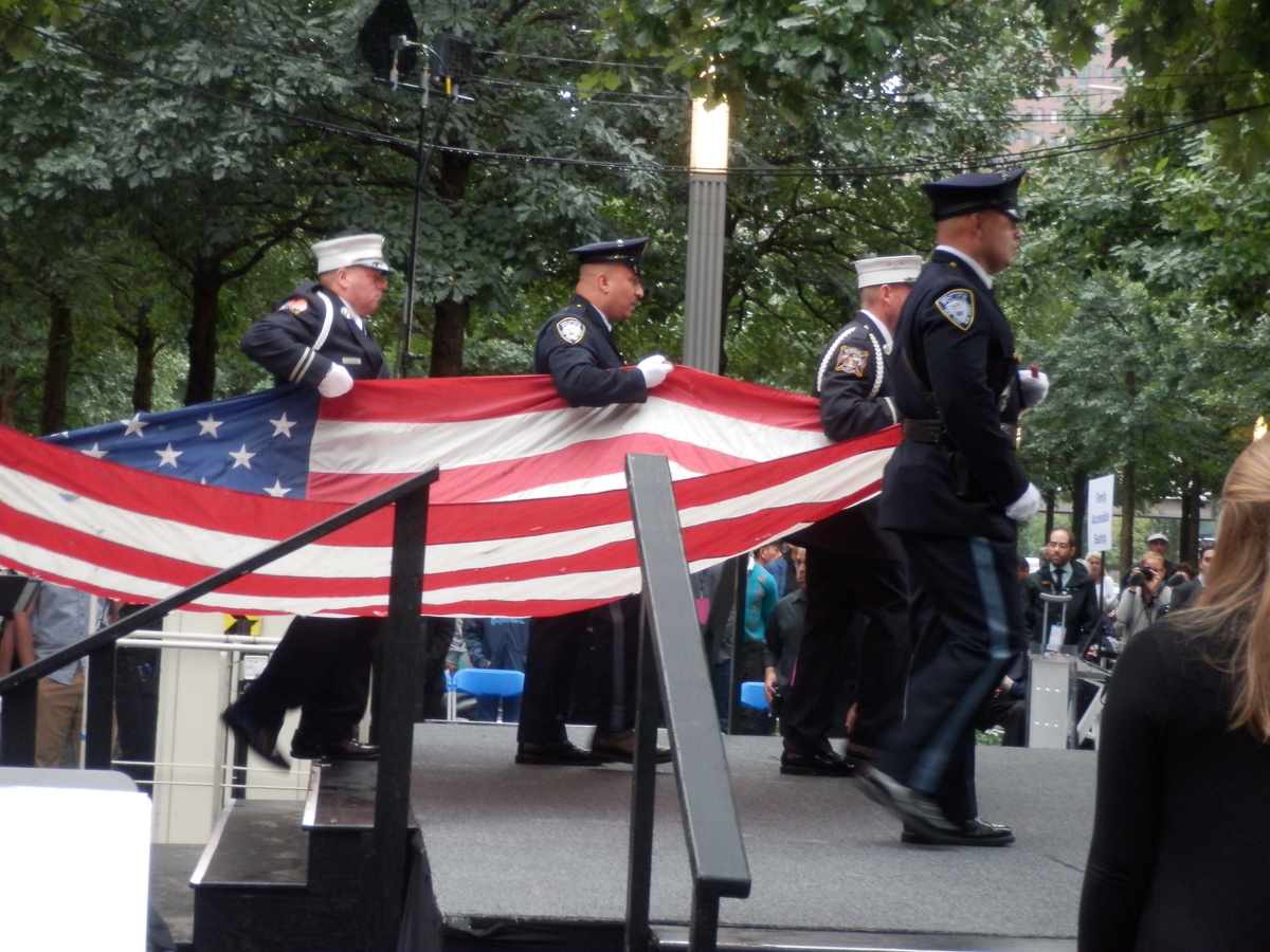 世界貿易センタービル北棟及び南棟に航空機が激突した時間になると、氏名読み上げを一旦止めて、弔鐘とともに黙祷が捧げられました。読み上げる遺族代表の中には17歳の少女がおり、「父親には一度も会ったことはないけれど、パパ、愛しているわ」と語っていたことが印象に残っています。