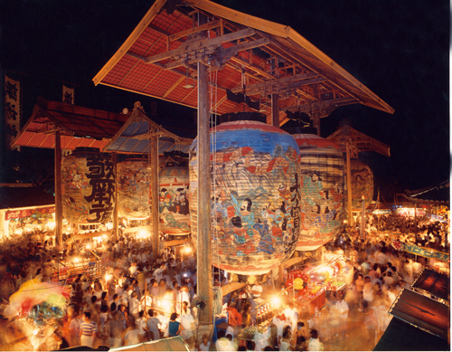 大提灯の大きさは一番大きい間浜(まはま)組のもので、全長10メートルにも及ぶ。かつて、氏子たちの間で大きさの競い合いが激化したことから、西尾藩が寸法制限令を出し、違反した組の世話役が入牢となる事件も起きた。時を経て代々伝わる巨大な提灯に込められた、熱い思いを感じてみたい。
