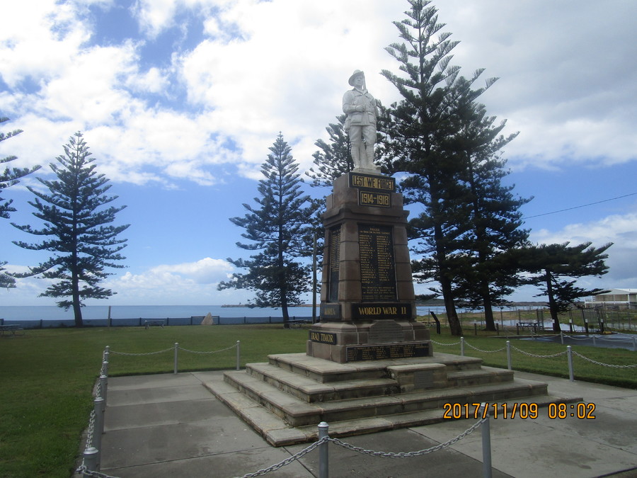 11月9日。東海岸の景勝地カルーアの河畔の公園でキャンプ。公園の高台の戦没者記念碑にはやはり第一次世界大戦で犠牲になった24人の氏名が刻まれていた。さらに朝鮮戦争、マラヤ独立戦争、ベトナム戦争、ニューギニア、インドネシア、アフガン、第一次・第二次湾岸戦争へカルーアから出征している。さらに現在でもPKF(国連平和維持活動)にカルーア出身者が貢献している。