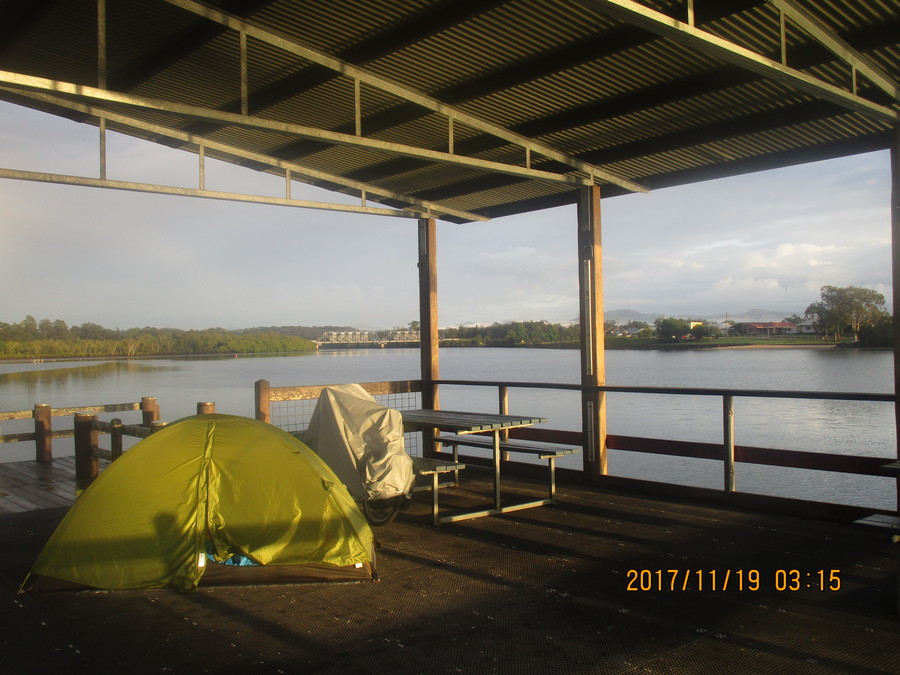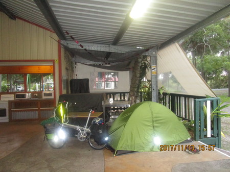 11月5日にシドニーを出発してから28日にブリスベンのゲストハウスにチェックインするまでの行程で宿泊施設に泊まったのは二日だけである。13日のフォスターのキャラバンサイト、19日のコフスハーバーのユースホステルだけである。フォスターでは大雨警報が出ていたのでテント泊を断念、コフスハーバーは久しぶりにホットシャワーを浴びたかったからである。その他の20日間はテントで野営である。