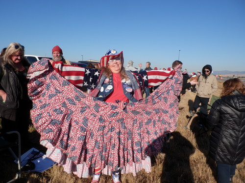 トランプ信者の一人でミズーラ在住のジニー・ジョセリンさんは、「7月にモンタナ州グレートフォールスで行われたトランプ集会に正午から並びましたが、入場できませんでした。今日は8時前に来ました」と語っていました。60代前半に見える白人女性のジニーさんは、開門時間が近付くとバックから「米国を再び偉大にする」という字句が入った赤い帽子を取り出して被りました。