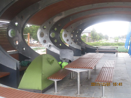 11月30日~12月3日。メルボルンから西方20キロくらいに位置するウィリアムス・ランディングは新興住宅地だ。携帯ラジオではABCニューズがビクトリア州海岸地方に洪水注意報(flush flooding warning)が発令されたことを繰り返し放送していた。このため新興住宅地の公園に避難して三泊することになった。この新興住宅地には中国人・インド人家族が多数住んでいることは本編第8回(2018年11月4日掲載)にて紹介したとおり。