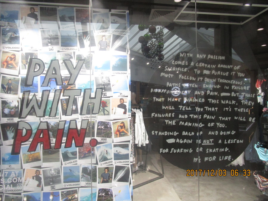 12月3日。ウィリアムス・ランディング近くのショッピングセンターに食料の買い出しにでかけた。アウトドア用品店のウィンドウに手書きのメッセージがあった。