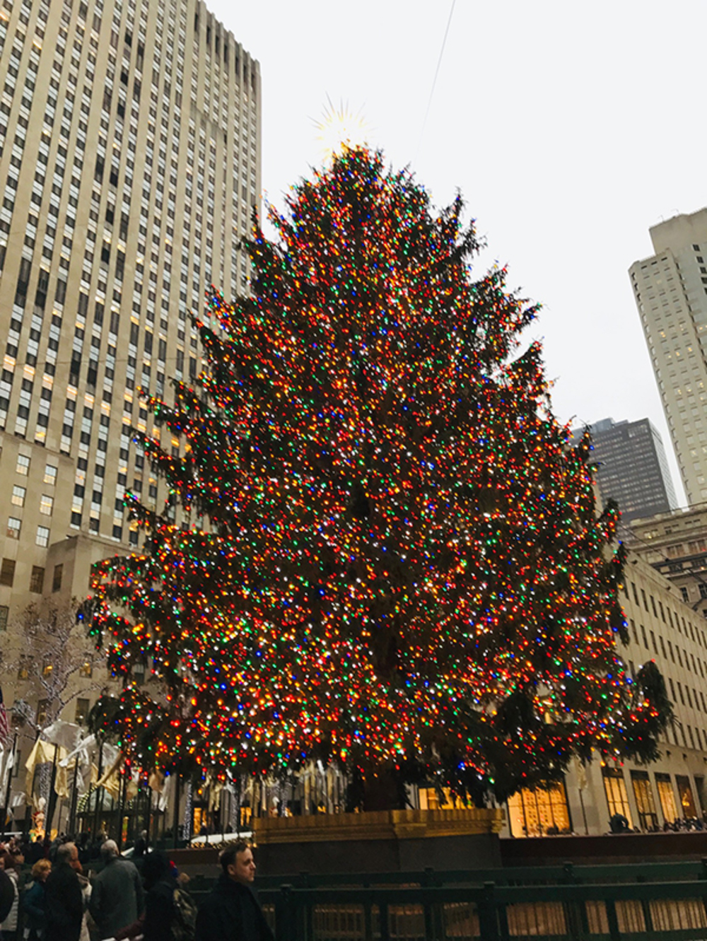 このクリスマスツリーの始まりは、1931年、大恐慌の真っ最中にロックフェラーセンターの建築に携わっていた労働者たちが寄付を集めてたてたツリーだったという。現在では世界中から観光客が集まってくるニューヨークのクリスマスの中心地となった。