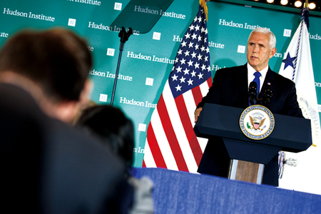 2018年10月にはペンス副大統領が中国との冷戦開始を宣言したと世界から受け止められる声明を発表した。ペンスは40分にわたる演説の中で、これまで米国がとってきた中国政策が意図した結果に結びつかず、今後は方針を変えて中国に対決姿勢で挑まなければならない理由を説明した。