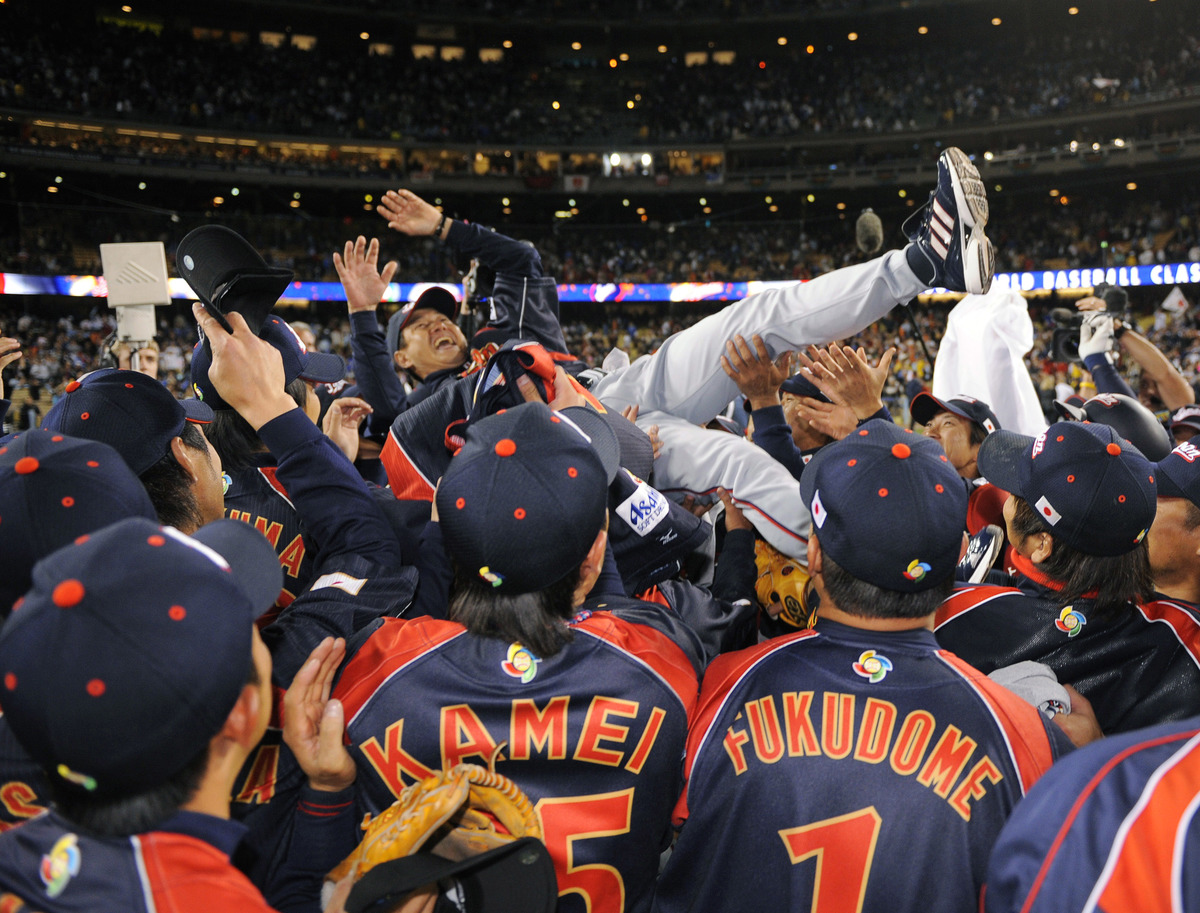 2009年WBC連覇で胴上げされる原監督( REUTERS/AFLO)