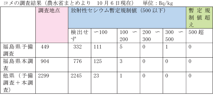 コメの調査結果(農水省まとめより作成)拡大画像表示