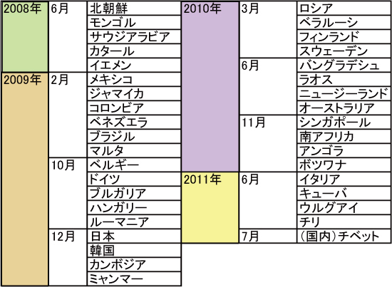 注意すべきはこれと並行して胡錦濤、温家宝両氏による首脳級外遊があり、軍や各省幹部の外国訪問もあることで、持ち札の多さは圧倒的だ。それらと習氏の動静を重ね合わせて見るなら中国外交の優先順位をより一層浮き彫りにできようが、別表を眺めるだけでも、動機のいくつかは推定できる。