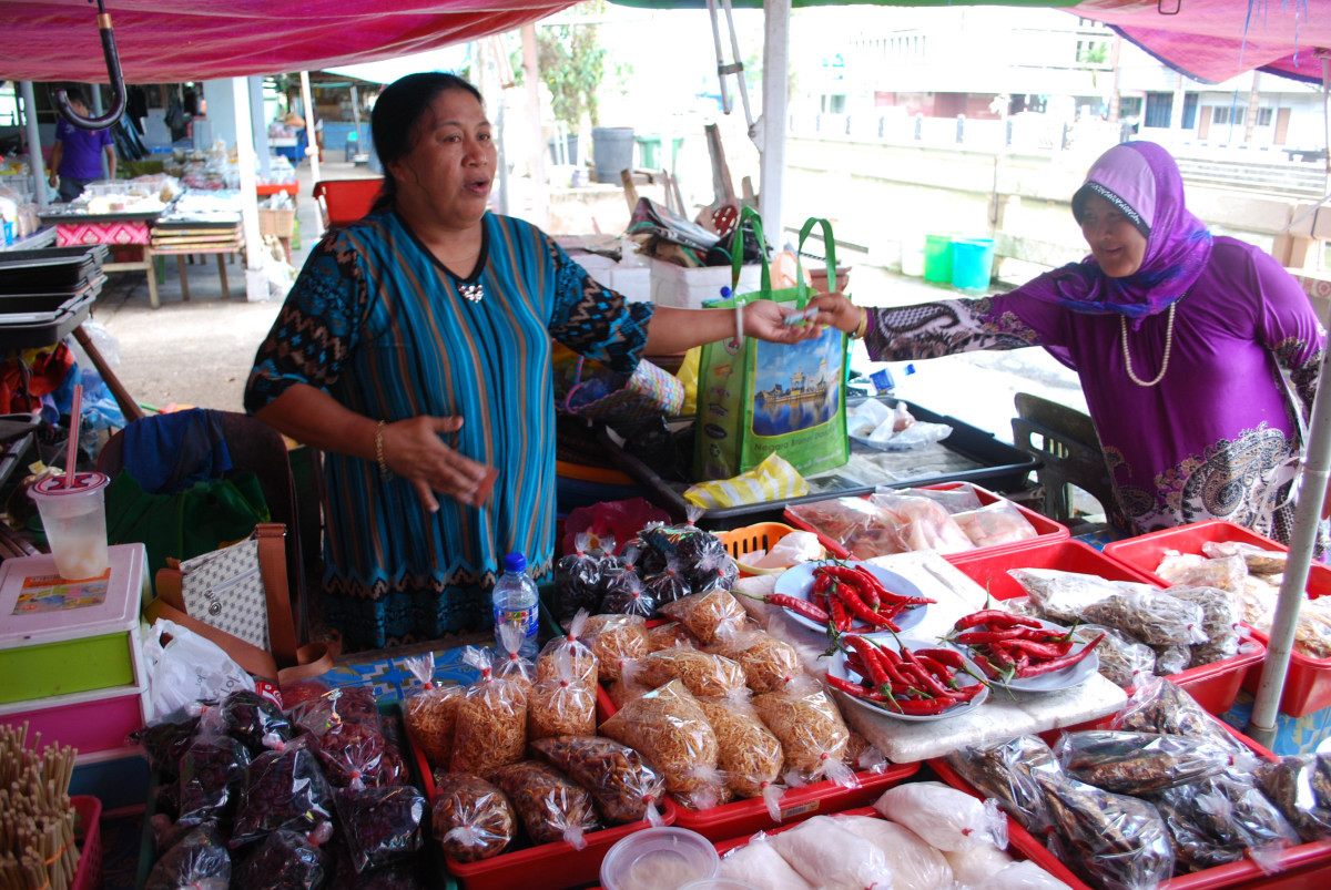 「Tamu Kianggeh」というローカル市場を訪問。アジアの市場といえば、活気溢れる光景をイメージするが、ここブルネイだけは大外れ。
