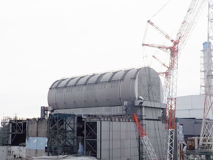 3号機は事故当時、水素爆発によって建屋の上部が吹き飛んだ。激しく破損した上部の瓦礫が撤去され、後に作られたその構造物は「使用済み燃料取り出し用カバー」と呼ばれるもので、「かまぼこ」の形をしたドームを八つに輪切りにする手法で組み立てられている。