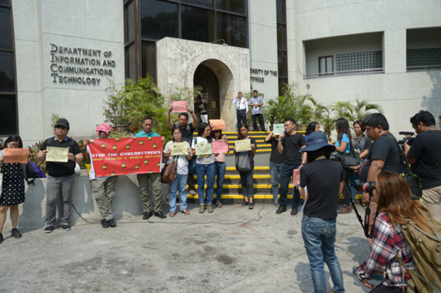 攻撃を受けたメディアや人権団体のメンバーは、3月12日の「世界反サイバー検閲デー」に情報コミュニケーション技術省、22日にはフィリピン大学マスコミュニケーション校の前で、抗議の声をあげた。そして29日、ブラットラットを含む4つのメディアが、IPC とサニウェイを相手どり、民事訴訟を起こした。