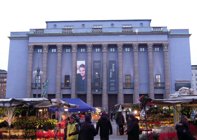 ノーベル授賞式が行われるコンサートホール。授賞式当日、ホール前の市場は撤去される。