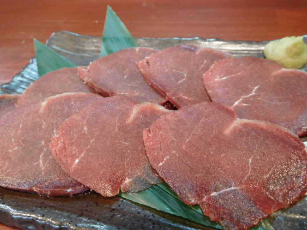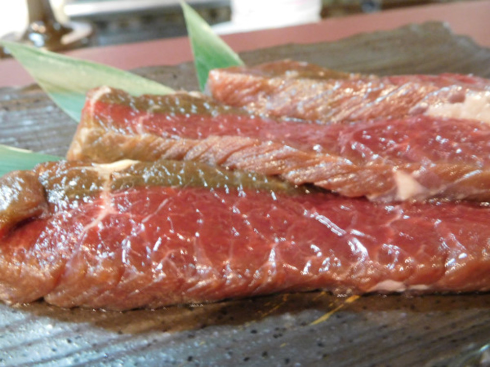 早速、鹿肉一頭喰いコースがスタート。まずは仔鹿のサーロイン刺身。ルイべで出してくれるかと思ったら、普通の刺身でまったく臭みはない。ジビエの刺身というのはやはり贅沢だ。続いて鹿レバー、タン、ハツ、ヒレ、サーロイン、内ももへと続く。最後に出されるのは、12日間熟成させた鹿肉。「肉は腐りかけが旨い」と言われるが、ジビエもその通り、熟成肉が旨い。
