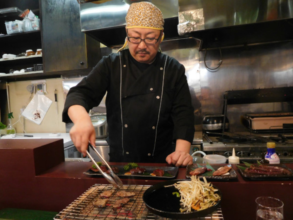 札幌出張2日目の夜、「鹿一頭喰い」のハンター直営・鹿肉ジンギスカン店「とりこ」へ向かう。繁華街すすきの、南6条西4丁目の角、温泉スパのサフロを目印に東に入って50mのところ、本当に目立たない店である。しかも、小さい。カウンターの7席だけ。