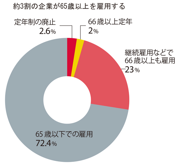 国が雇用を義務付ける65歳を超えてシニア活用を進める企業が増えている。厚生労働省が18年6月に集計した「高年齢者の雇用状況」によると、31人以上を常時雇用する全国15万6989社のうち、66歳以上を雇用する企業は27・6%にのぼる。