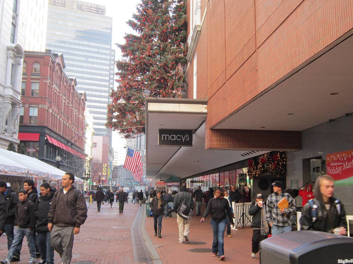 クリスマスを目前に控えて、買い物客でにぎわうボストン中心部のショッピングエリア