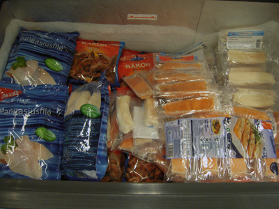 魚も解凍してから調理をするのが当たり前。スウェーデンのスーパーは冷凍品コーナーが賑やか。