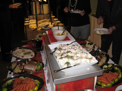レストランで出されるJulbordは、魚料理に肉料理、そしてデザートと種類が豊富。冷たい料理から先に取り、そのあとに温かい料理を取るのが一応の決まり。