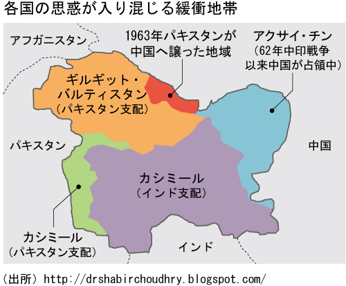 1962年の中印戦争以来、中国、インド、パキスタンが接する一角は紛争が絶えず今日に至る。別掲図で薄茶色の一角が問題の地域。これをパキスタンは中国へ租借させるという話だ。