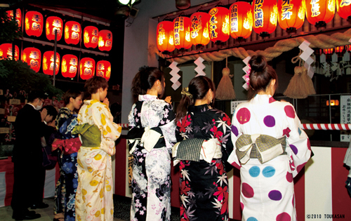 とうかさん大祭の別名は“浴衣の着始め祭り”。入梅前の気温が高い時期に当たることから、その年初めて浴衣を着て出かける祭りと位置づけられるためで、かつては、デザイナーズブランドの新作浴衣をお披露目する場ともなっていたそうだ。